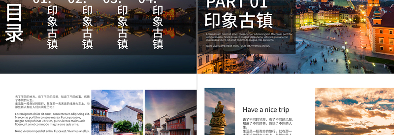 <p>古鎮(zhèn)印象旅行紀(jì)念相冊(cè)PPT模板Lorem ipsum dolor sit amet, consectetuer adipiscing elit. Maecenas porttitor congue massa. Fusce posuere, magna sed pulvinar ultricies, purus lectus malesuada libero, sit amet commodo magna eros quis urna.Nunc viverra imperdiet enim. Fusce est. Vivamus a tellus.</p><br><p>印象古鎮(zhèn)01.目錄印象古鎮(zhèn)02.印象古鎮(zhèn)03.印象古鎮(zhèn)04.</p><br><p>PART 01印象古鎮(zhèn)Lorem ipsum dolor sit amet, consectetuer adipiscing elit. Maecenas porttitor congue massa. Fusce posuere, magna sed pulvinar ultricies, purus lectus malesuada libero, sit amet commodo magna eros quis urna.Nunc viverra imperdiet enim. Fusce est. Vivamus a tellus.</p><br><p>去了不同的地方,看了不同的風(fēng)景,知道了不同的事,感悟了不同的人生。生活是一段奇妙的旅行,就在那一去無返的綠皮火車上,與那些新人和舊人們共同經(jīng)歷吧!Lorem ipsum dolor sit amet, consectetuer adipiscing elit. Maecenas porttitor congue massa. Fusce posuere, magna sed pulvinar ultricies, purus lectus malesuada libero, sit amet commodo magna eros quis urna.Nunc viverra imperdiet enim. Fusce est. Vivamus a tellus.Have a nice trip去了不同的地方,看了不同的風(fēng)景,知道了不同的事,感悟了不同的人生</p><br><p>去了不同的地方,看了不同的風(fēng)景,知道了不同的事,感悟了不同的人生。生活是一段奇妙的旅行,就在那一去無返的綠皮火車上,與那些新人和舊人們共同經(jīng)歷吧!Lorem ipsum dolor sit amet, consectetuer adipiscing elit. Maecenas porttitor congue massa. Nunc viverra imperdiet enim. Fusce est. Vivamus a tellus.Have a nice trip</p><br><p>去了不同的地方,看了不同的風(fēng)景,知道了不同的事,感悟了不同的人生。生活是一段奇妙的旅行,就在那一去無返的綠皮火車上,與那些新人和舊人們共同經(jīng)歷吧!Nunc viverra imperdiet enim. Fusce est. Vivamus a tellus.28/07Image placeholderMore textHave a nice trip</p><br><p>ABOUT USLyft blog vegan ramps去了不同的地方,看了不同的風(fēng)景,知道了不同的事,感悟了不同的人生。生活是一段奇妙的旅行,就在那一去無返的綠皮火車上,與那些新人和舊人們共同經(jīng)歷吧!Nunc viverra imperdiet enim. Fusce est. Vivamus a tellus.Have a nice trip</p><br><p>Have a nice tripLorem ipsum dolor sit amet, consectetuer adipiscing elit. Maecenas porttitor congue massa. Fusce posuere, magna sed pulvinar ultricies, purus lectus malesuada libero, sit amet commodo magna eros quis urna.Have a nice trip去了不同的地方,看了不同的風(fēng)景,知道了不同的事,感悟了不同的人生。生活是一段奇妙的旅行,就在那一去無返的綠皮火車上,與那些新人和舊人們共同經(jīng)歷吧!Lorem ipsum dolor sit amet, consectetuer adipiscing elit. Maecenas porttitor congue massa. Fusce posuere, magna sed pulvinar ultricies, purus lectus malesuada libero, sit amet commodo magna eros quis urna.Nunc viverra imperdiet enim. Fusce est. Vivamus a tellus.</p><br><p>PART 02印象古鎮(zhèn)Lorem ipsum dolor sit amet, consectetuer adipiscing elit. Maecenas porttitor congue massa. Fusce posuere, magna sed pulvinar ultricies, purus lectus malesuada libero, sit amet commodo magna eros quis urna.Nunc viverra imperdiet enim. Fusce est. Vivamus a tellus.</p><br><p>去了不同的地方,看了不同的風(fēng)景,知道了不同的事,感悟了不同的人生。生活是一段奇妙的旅行,就在那一去無返的綠皮火車上,與那些新人和舊人們共同經(jīng)歷吧!Lorem ipsum dolor sit amet, consectetuer adipiscing elit. Maecenas porttitor congue massa. Nunc viverra imperdiet enim. Fusce est. Vivamus a tellus.Have a nice trip</p><br><p>Have a nice tripMore text</p><br><p>Have a nice tripLorem ipsum dolor sit amet, consectetuer adipiscing elit. Maecenas porttitor congue massa. Nunc viverra imperdiet enim. Fusce est. Vivamus a tellus.去了不同的地方,看了不同的風(fēng)景,知道了不同的事,感悟了不同的人生。生活是一段奇妙的旅行,就在那一去無返的綠皮火車上,與那些新人和舊人們共同經(jīng)歷吧!Have a nice trip</p><br><p>去了不同的地方,看了不同的風(fēng)景,知道了不同的事,感悟了不同的人生。生活是一段奇妙的旅行,就在那一去無返的綠皮火車上,與那些新人和舊人們共同經(jīng)歷吧!Clean LayoutHave a nice trip去了不同的地方,看了不同的風(fēng)景,知道了不同的事,感悟了不同的人生。生活是一段奇妙的旅行,就在那一去無返的綠皮火車上,與那些新人和舊人們共同經(jīng)歷吧!Minimal DesignMore text hereMore text here</p><br><p>PART 03印象古鎮(zhèn)Lorem ipsum dolor sit amet, consectetuer adipiscing elit. Maecenas porttitor congue massa. Fusce posuere, magna sed pulvinar ultricies, purus lectus malesuada libero, sit amet commodo magna eros quis urna.Nunc viverra imperdiet enim. Fusce est. Vivamus a tellus.</p><br><p>Have a nice trip去了不同的地方,看了不同的風(fēng)景,知道了不同的事,感悟了不同的人生。生活是一段奇妙的旅行,就在那一去無返的綠皮火車上,與那些新人和舊人們共同經(jīng)歷吧!A wonderful serenity has taken possession of my entire.Image Subtitle</p><br><p>Have a nice trip去了不同的地方,看了不同的風(fēng)景,知道了不同的事,感悟了不同的人生。生活是一段奇妙的旅行,就在那一去無返的綠皮火車上,與那些新人和舊人們共同經(jīng)歷吧!</p><br><p>More textLorem ipsum dolor sit amet, consectetuer adipiscing elit. Maecenas porttitor congue massa. Fusce posuere, magna sed pulvinar ultricies, purus lectus malesuada libero, sit amet commodo magna eros quis urna.Nunc viverra imperdiet enim. Fusce est. Vivamus a tellus.去了不同的地方,看了不同的風(fēng)景,知道