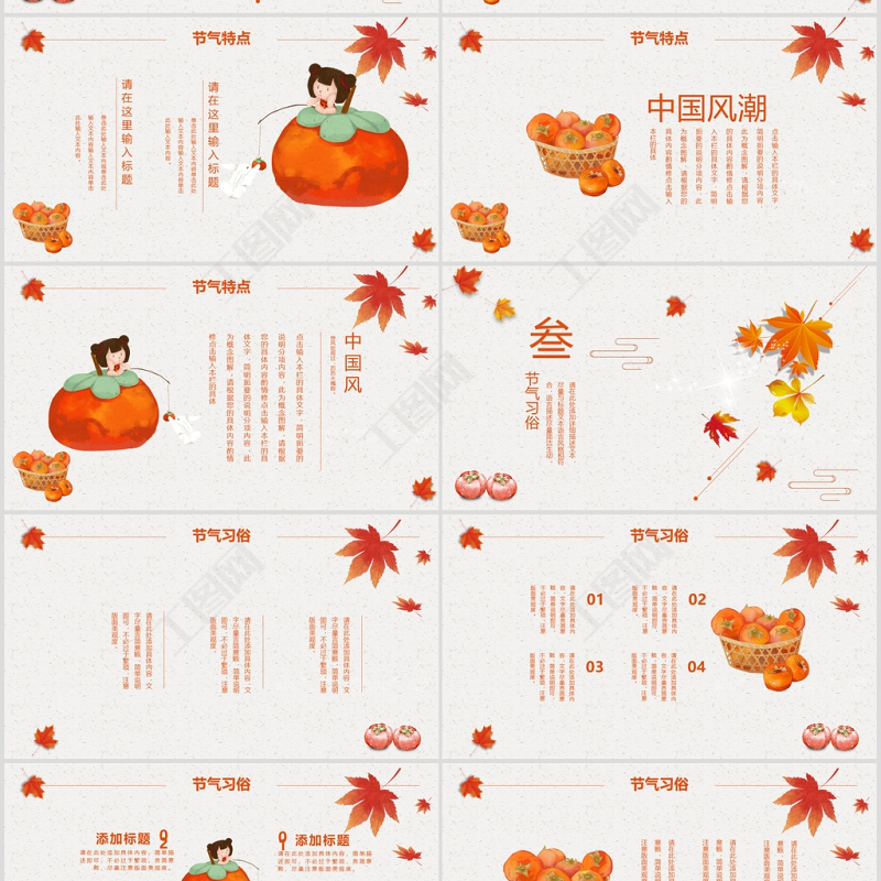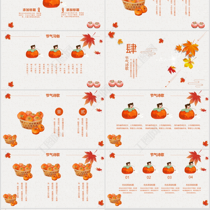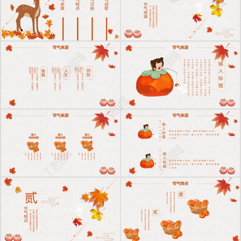 2020簡約古風(fēng)楓葉立秋二十四節(jié)氣PPT模板下載包含