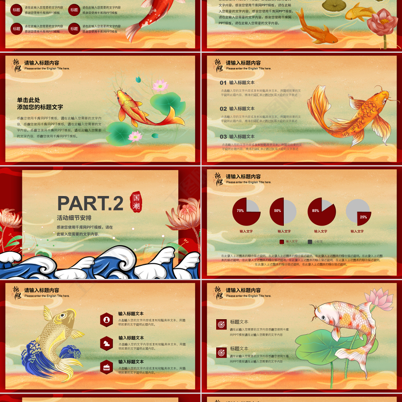 紅色創(chuàng)意簡約國潮錦鯉好運(yùn)活動(dòng)策劃PPT模