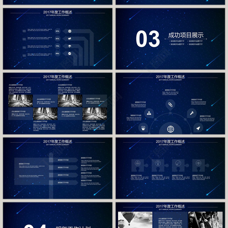 炫酷科技藍色背景工作總結(jié)新年匯報PPT Array
