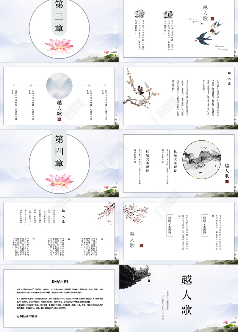 工圖網(wǎng)提供中國風(fēng)語文課件越人歌教育通用PPT模板供會員免費下載。更多精彩黨課PPT素材,盡在工圖網(wǎng)。