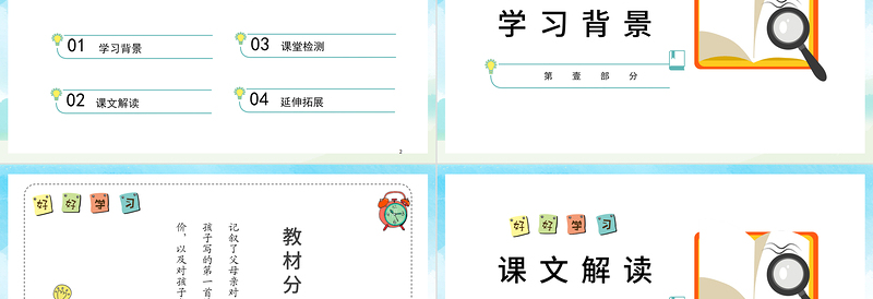 教材分析記敘了父母親對(duì)一個(gè)七八歲孩子寫(xiě)的第一首詩(shī)的不同評(píng)價(jià),以及對(duì)孩子成長(zhǎng)的影響