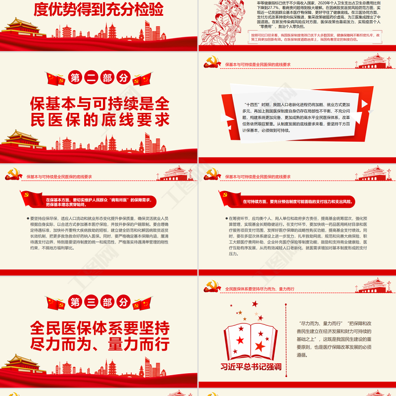 堅(jiān)持走中國(guó)特色全民醫(yī)保之路PPT黨政風(fēng)學(xué)習(xí)全民醫(yī)保體系專題課件模板 Array