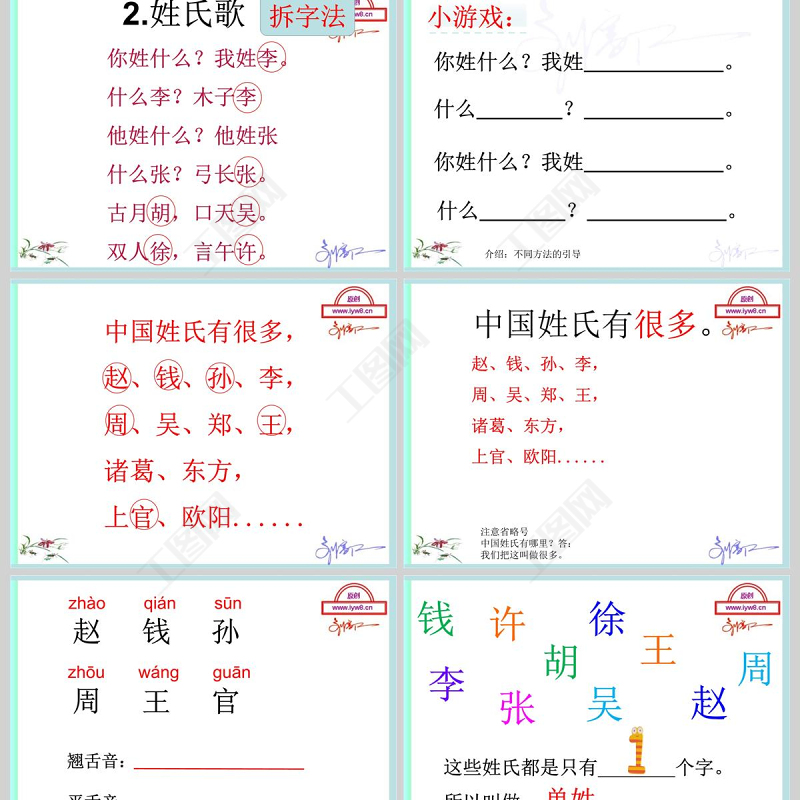 工圖網(wǎng)提供 姓氏歌ppt一年級下冊部編版供會員免費下載。更多精彩黨課PPT素材,盡在工圖網(wǎng)。