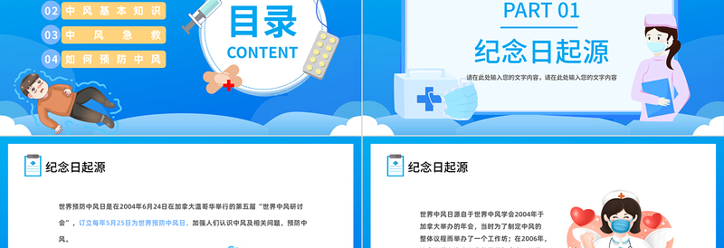 2023世界預(yù)防中風(fēng)日PPT卡通插畫風(fēng)保持身體健康世界預(yù)防中風(fēng)日知識宣講課件模板