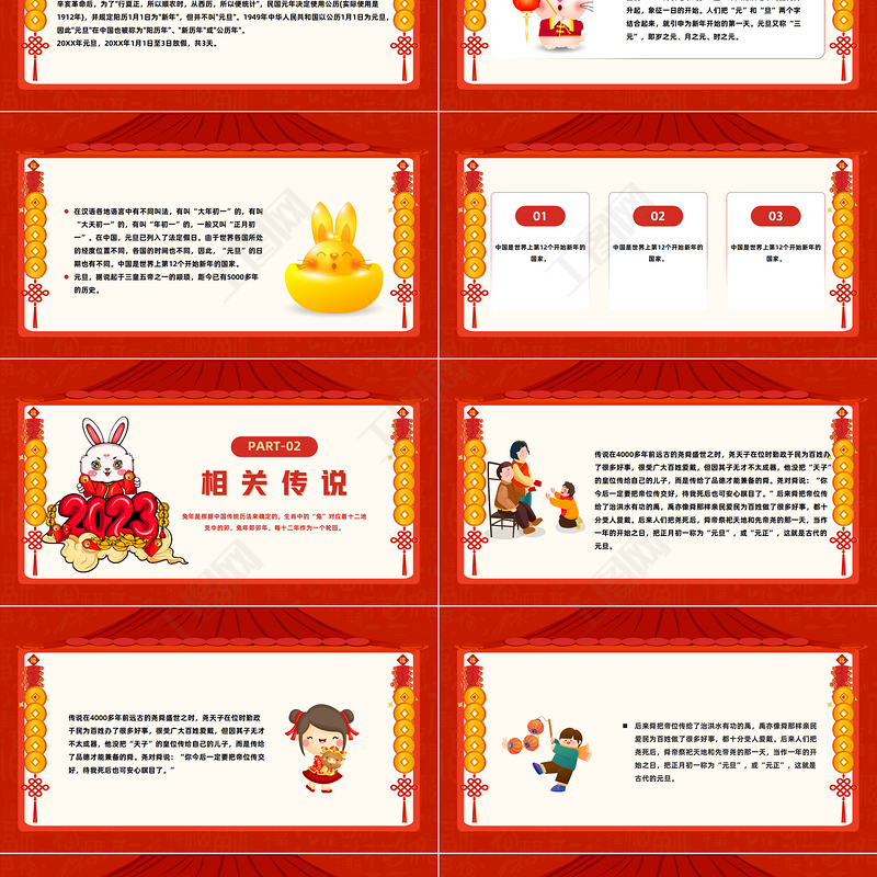 2023元旦快樂紅色喜慶中國風(fēng)兔年元旦知識(shí)宣講課件模板下載 Array