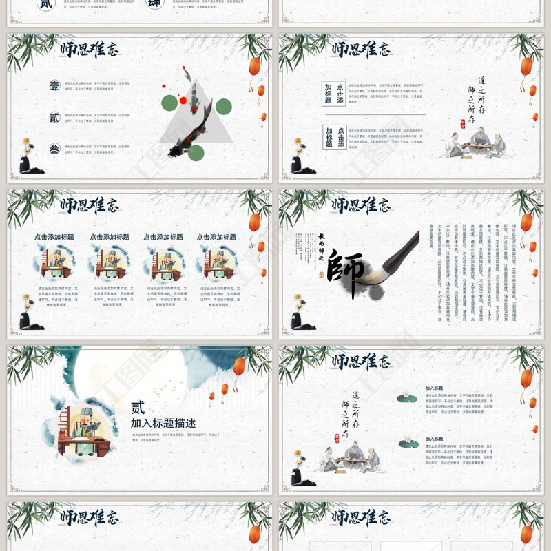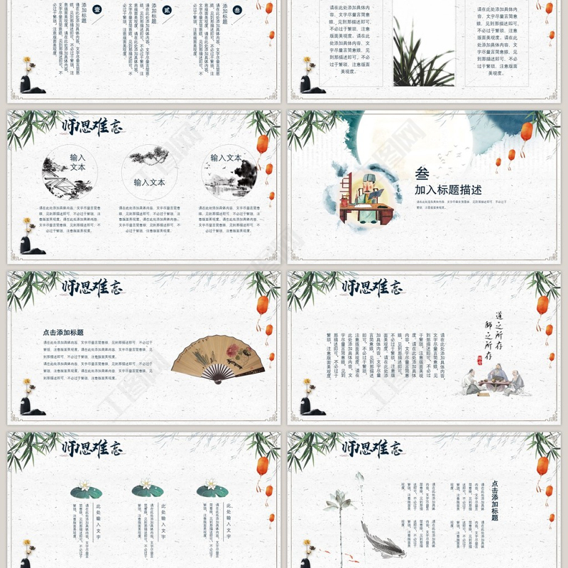 原創(chuàng)2019年中國水墨風慶祝教師節(jié)難忘師恩PPT模板-版權可商用包含