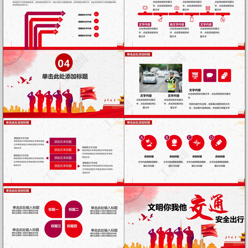 紅色沉穩(wěn)風(fēng)格交通文明ppt模板