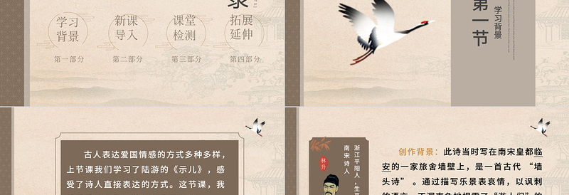 古人表達(dá)愛國情感的方式多種多樣,上節(jié)課我們學(xué)習(xí)了陸游的《示兒》,感受了詩人直接表達(dá)的方式。這節(jié)課,我們看看林升是怎樣表達(dá)愛國情感的。