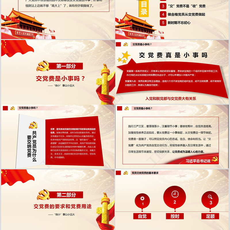 框架完整紅色正氣交黨費(fèi)黨課ppt模板,,大氣 Array