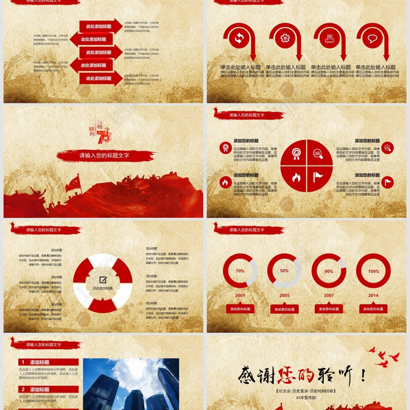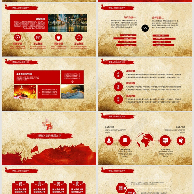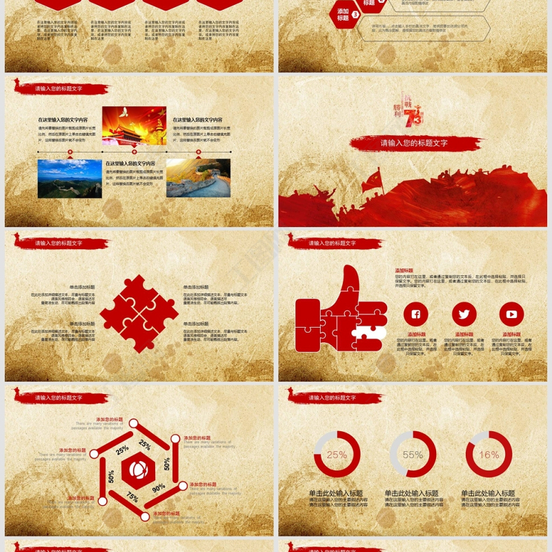原創(chuàng)紅色黨政風(fēng)紀(jì)念抗日戰(zhàn)爭74周年紀(jì)念抗戰(zhàn)勝利PPT模板-版權(quán)可商用包含
