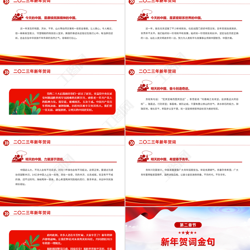 工圖網(wǎng)提供2023新年賀詞PPT紅色大氣奮斗創(chuàng)造奇跡力量源于團(tuán)結(jié)希望寄予青年黨課學(xué)習(xí)課件供會(huì)員免費(fèi)下載。更多精彩黨課PPT素材,盡在工圖網(wǎng)。