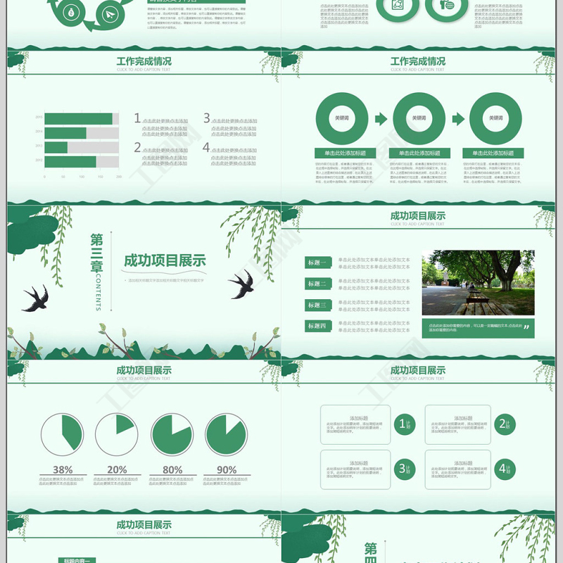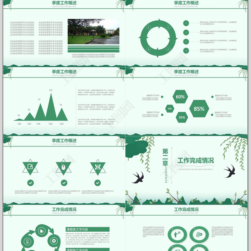 綠色小清新春天季度工作匯報(bào)PPT模板 Array