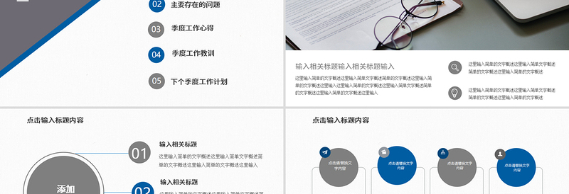 簡約時尚灰藍(lán)撞色年終總結(jié)計劃書PPT模板