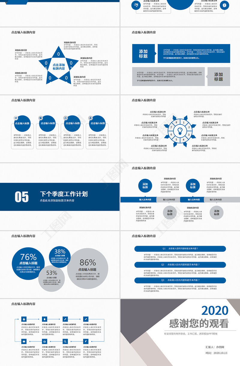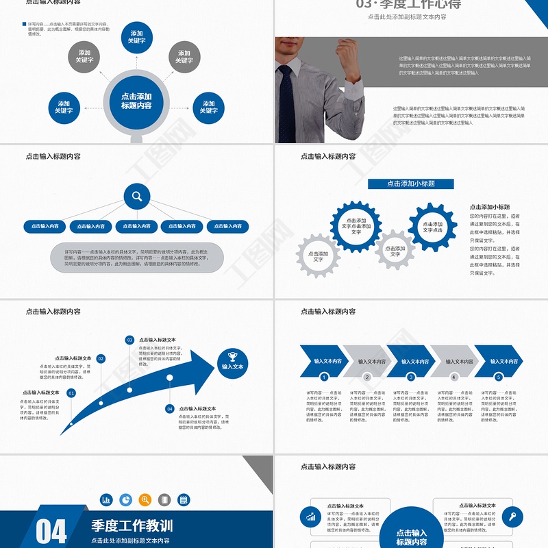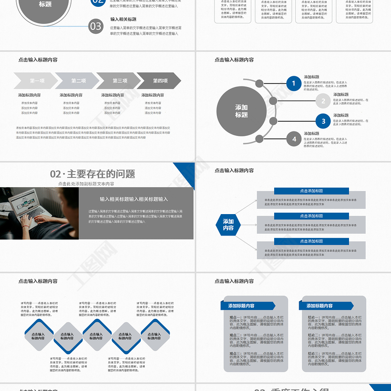 工圖網(wǎng)提供簡約時尚灰藍(lán)撞色年終總結(jié)計劃書PPT模板供會員免費下載。更多精彩黨課PPT素材,盡在工圖網(wǎng)。