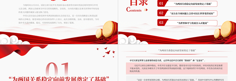 紅色黨政風深入學習中美元首舊金山元首峰會PPT專題課件模板 Array