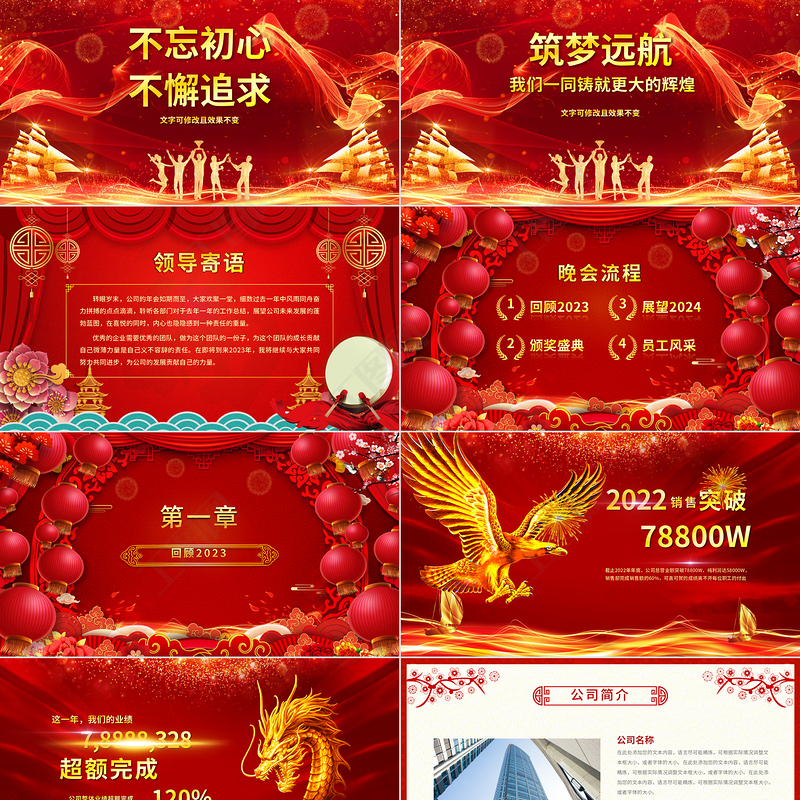 2024年會PPT中國紅大氣喜迎龍年公司年會頒獎盛典員工表彰大會模板下載 Array