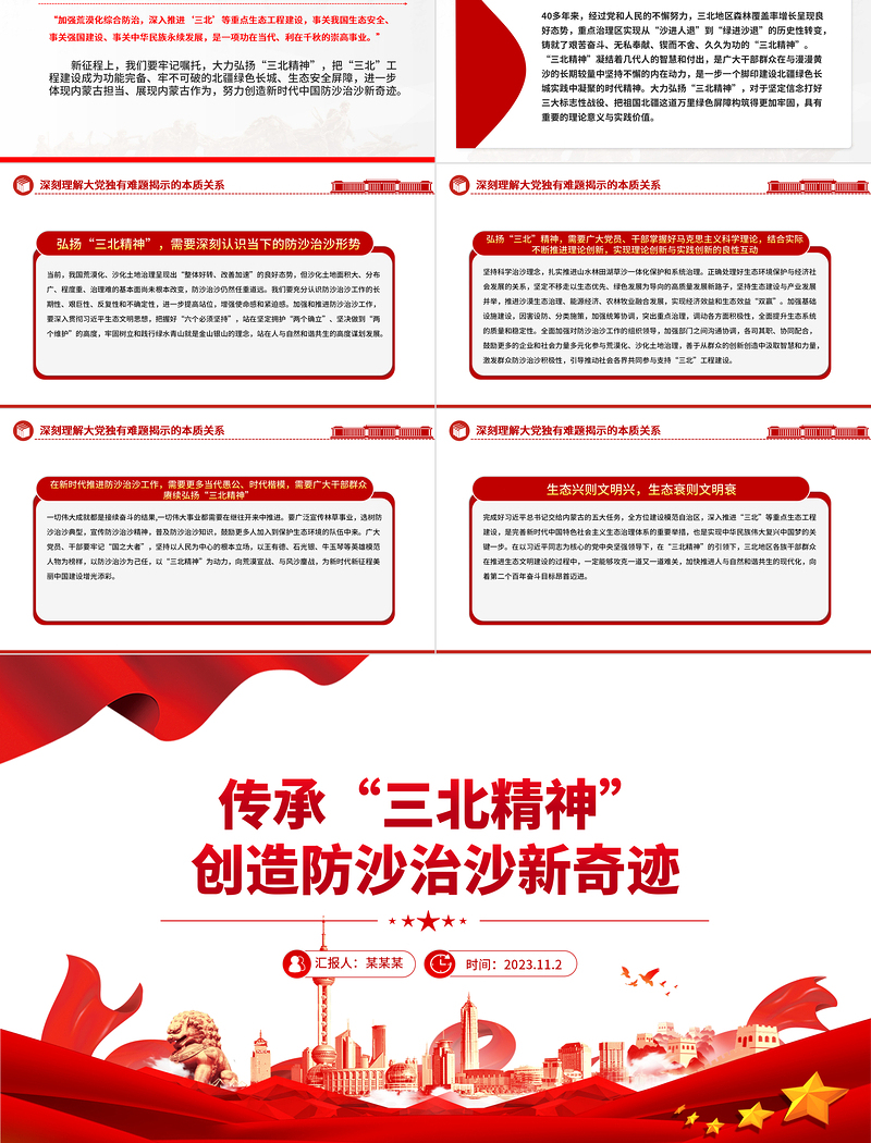 傳承三北精神PPT簡(jiǎn)潔精美加強(qiáng)荒漠化綜合防治創(chuàng)造防沙治沙新奇跡課件下載 Array