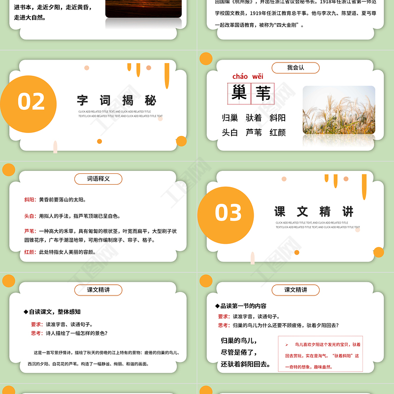 課文精講歸巢的鳥兒斜陽頭白的蘆葦