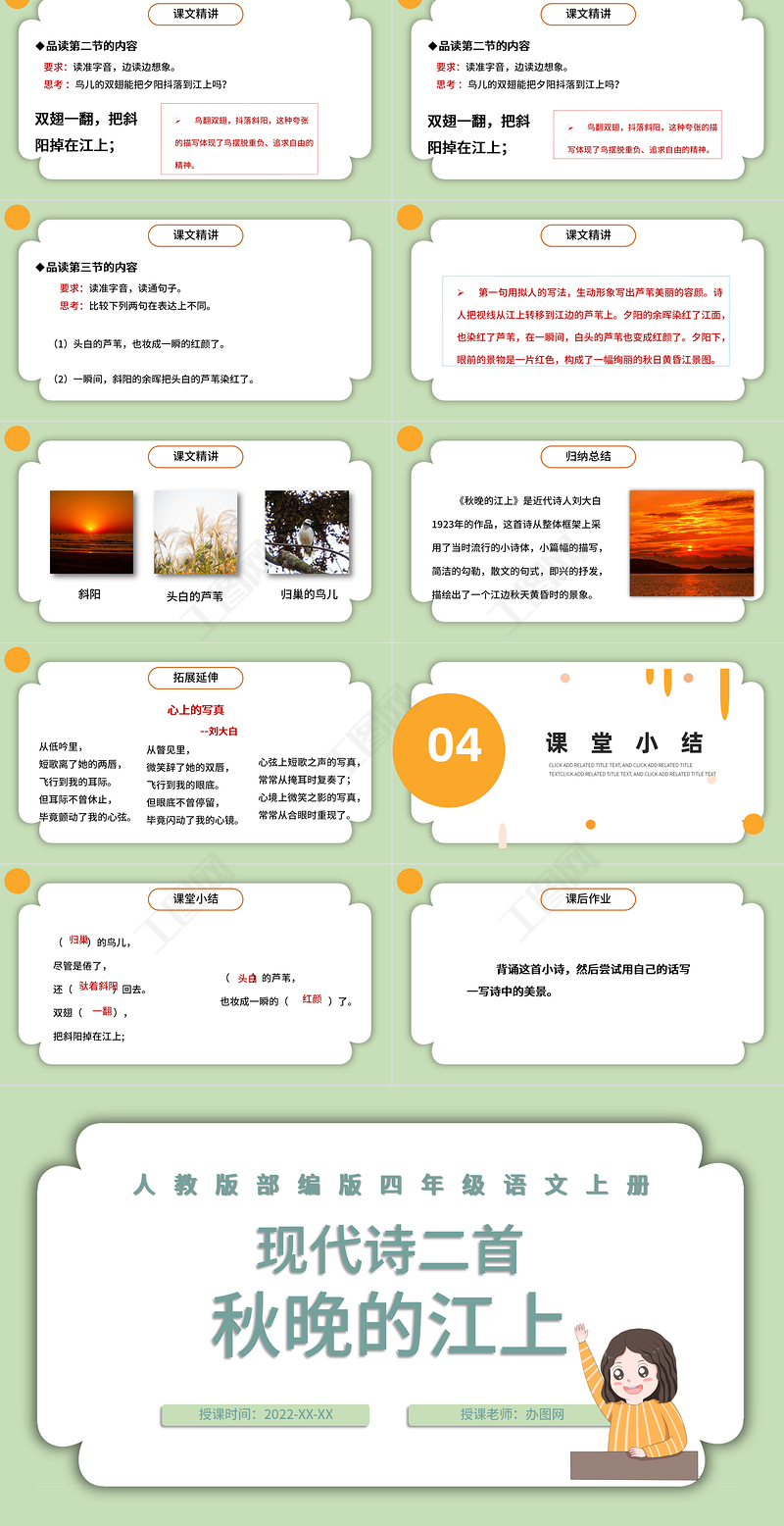 現(xiàn)代詩二首 秋晚的江上人教版部編版四年級語文上冊授課時間:2022-XX-XX授課老師:辦圖網(wǎng)