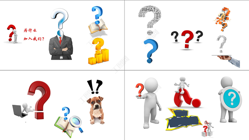 3D小人問號素材大全問號PPT專用素材疑問PPT模板