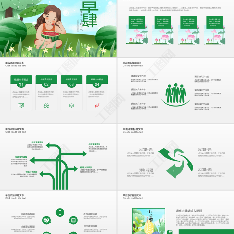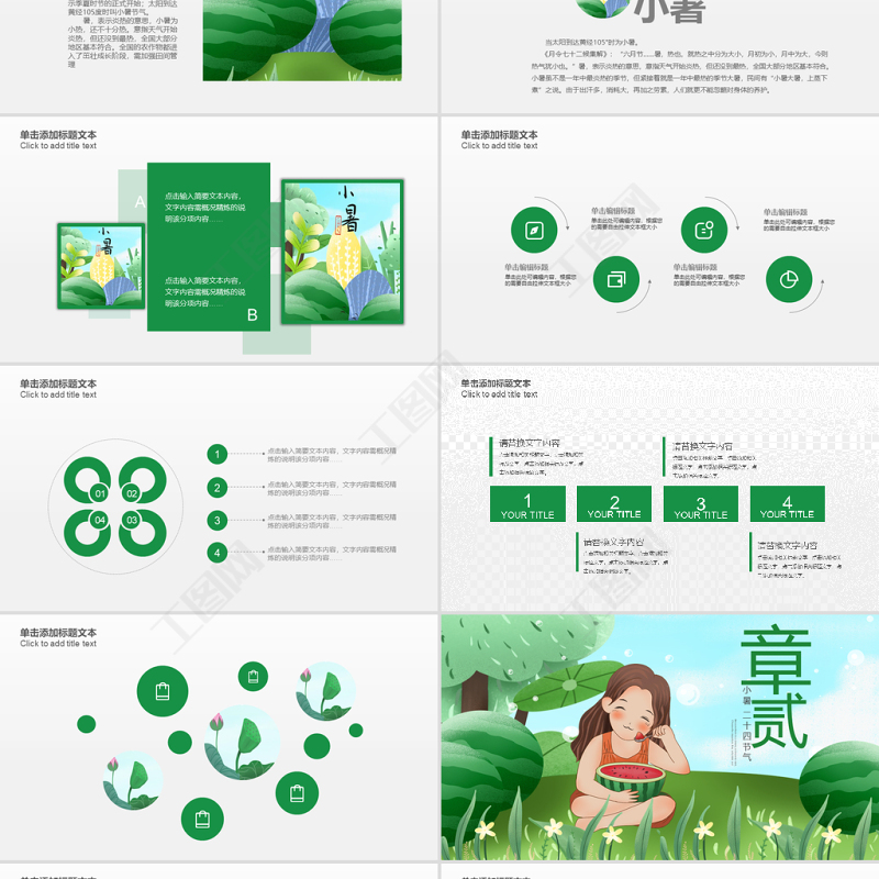 原創(chuàng)清新二十四節(jié)氣小暑ppt模板-版權(quán)可商用