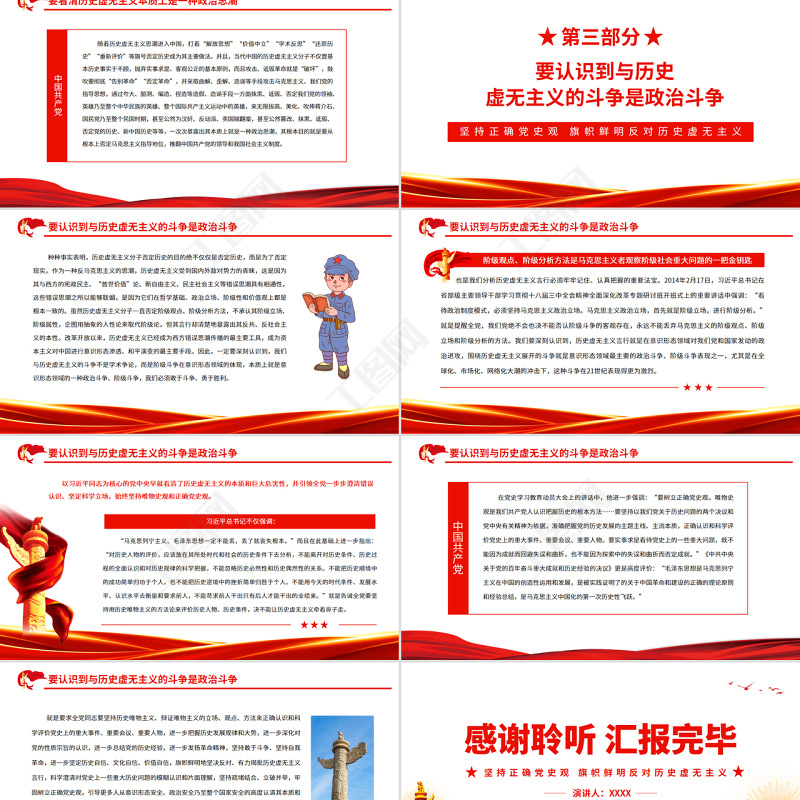 堅持正確黨史觀旗幟鮮明反對歷史虛無主義PPT紅色簡約風黨員干部深入學習《決議》專題黨課課件
