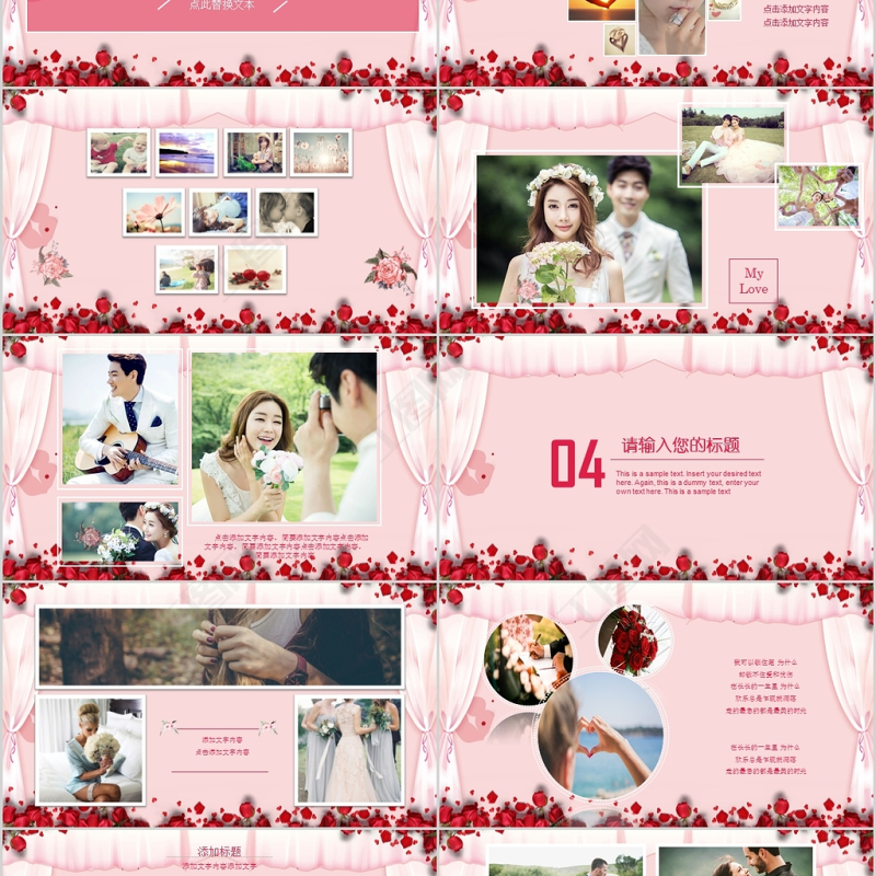 浪漫新婚典禮婚禮相冊婚慶策劃PPT模板 Array