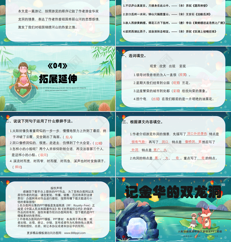 人教部編版四年級(jí)下冊(cè)語(yǔ)文PPT模板記金華的雙龍洞授課老師:辦圖網(wǎng) 時(shí)間:2022.8