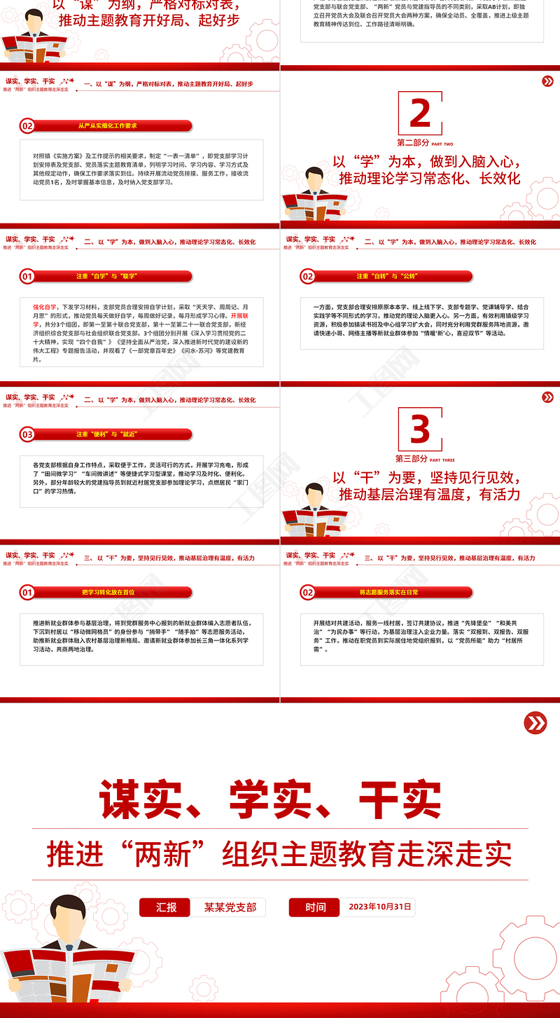 謀實(shí)學(xué)實(shí)干實(shí)PPT紅色簡(jiǎn)潔推進(jìn)“兩新”組織主題教育走深走實(shí)黨課課件 Array