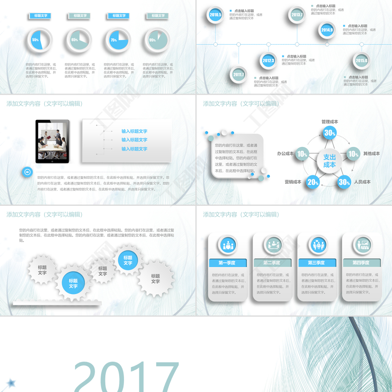 工圖網(wǎng)提供2017藍(lán)色羽毛小清新工作匯報(bào)告PPT模板供會(huì)員免費(fèi)下載。更多精彩黨課PPT素材,盡在工圖網(wǎng)。