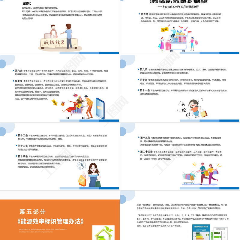 1、《中華人民共和國產(chǎn)品質(zhì)量法》 3、《禁止價格欺詐行為的規(guī)定》 5、《家用電器國家三包規(guī)定》 7、《能源效率標(biāo)識管理辦法》 2、《中華人民共和國價格法》 4、《中華人民共和國消費者權(quán)益保護法》 6、《 零售商促銷行為管理辦法》 8、《CCC強制性產(chǎn)品認證標(biāo)志管理辦法》