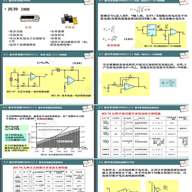 表5.16 幾種臺式的數字多用表主要性能 5.7 數字多用表DMM/5.7.4 數字多用表的發(fā)展簡況