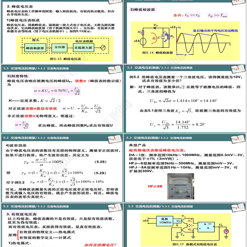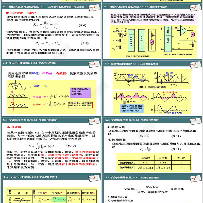 5.3 交流電壓的測量/ 5.3.1 交流電壓的表征交流電壓可以用峰值、平均值、有效值、波形系數以及波峰系數來表征。