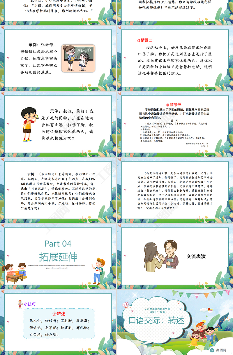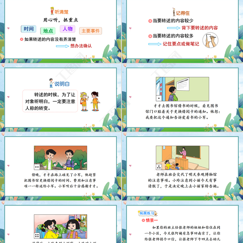 辦圖網(wǎng)人教部編版四年級下冊語文PPT模板口語交際:轉(zhuǎn)述