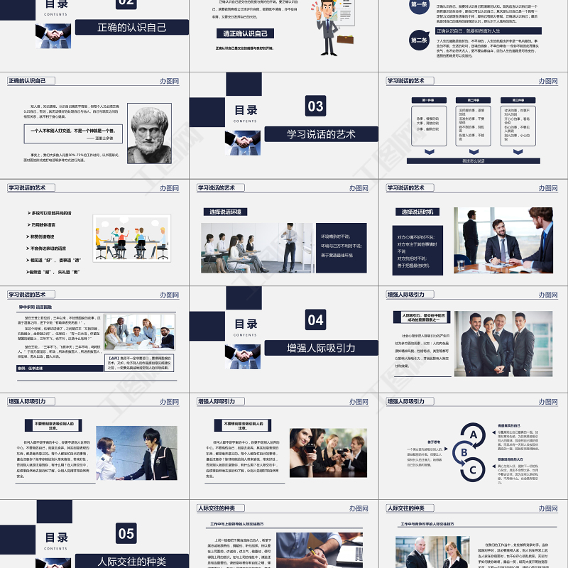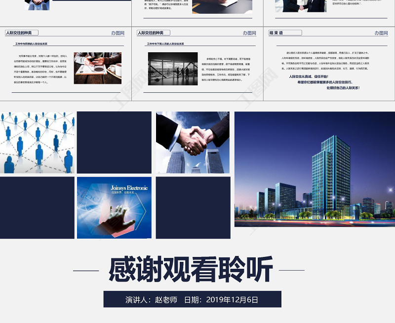 人際交往的概念辦圖網你可以選擇公司,但不能選擇老板你可以選擇朋友,但不能選擇同事。 職場溝通及人際關系是除了工作技能外, 必須不斷修煉、學習成長的重要一環(huán)。假如溝通也是同糖或咖啡一樣的商品的話,我愿意付出比任何東西都珍貴的價格來購買這種能力?!蹇朔评?/p>