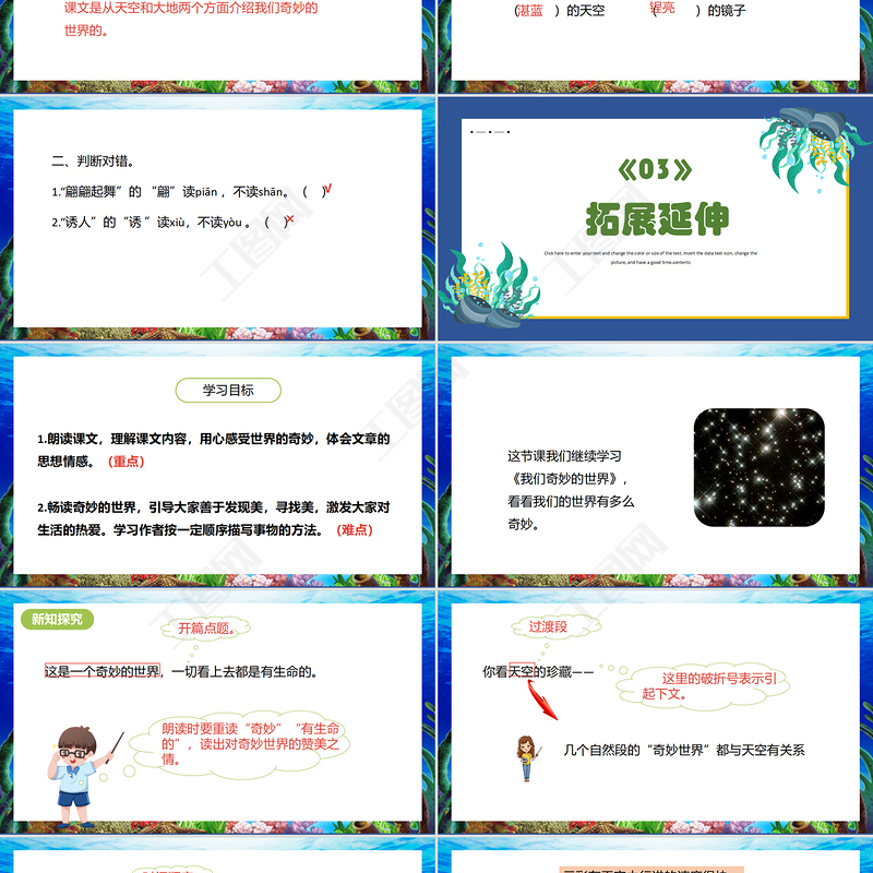 這節(jié)課我們繼續(xù)學(xué)習(xí)《我們奇妙的世界》,看看我們的世界有多么奇妙。