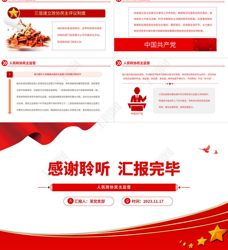 工圖網(wǎng)提供民主監(jiān)督工作PPT大氣黨政風(fēng)推動形成加強(qiáng)和改進(jìn)人民政協(xié)民主監(jiān)督工作的良好局面專題輔導(dǎo)黨課課件 供會員免費下載。更多精彩黨課PPT素材,盡在工圖網(wǎng)。