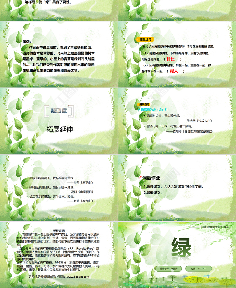 工圖網(wǎng)提供2022綠PPT第10課小學(xué)四年級(jí)語(yǔ)文下冊(cè)部編人教版教學(xué)課件供會(huì)員免費(fèi)下載。更多精彩黨課PPT素材,盡在工圖網(wǎng)。