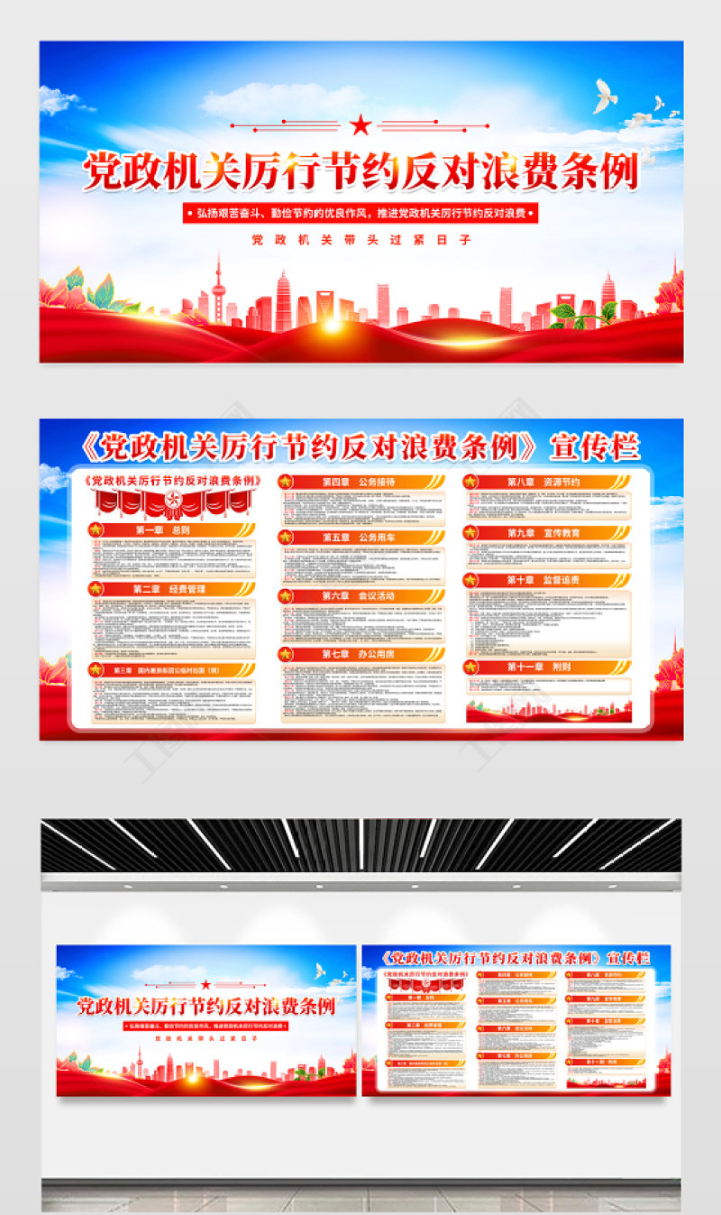 紅色精美《黨政機(jī)關(guān)厲行節(jié)約反對(duì)浪費(fèi)條例》宣傳欄設(shè)計(jì)