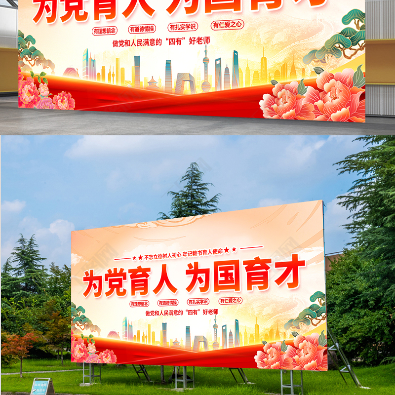 為黨育人為國育才展板精美大氣四有好老師校園黨建宣傳展板