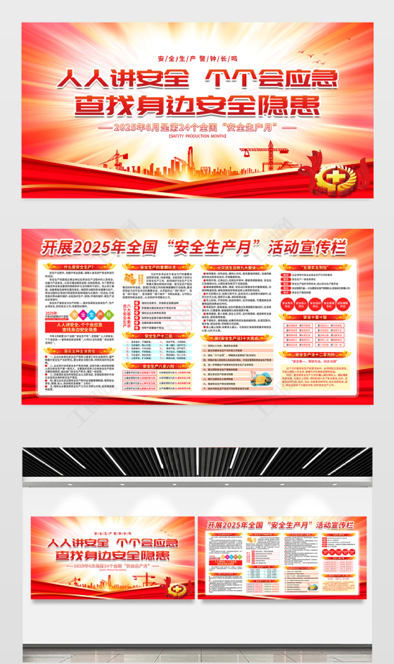紅色創(chuàng)意第24個全國安全生產(chǎn)月知識宣傳欄設(shè)計模板