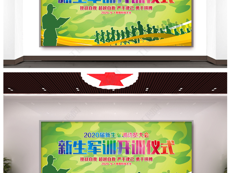 原創(chuàng)新生軍訓開訓儀式海報展板-版權(quán)可商用