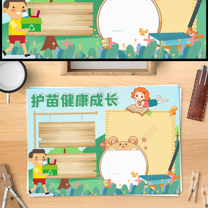 2023護(hù)苗健康成長(zhǎng)手抄報(bào)綠色卡通護(hù)苗行動(dòng)word電子小報(bào)模板 Array