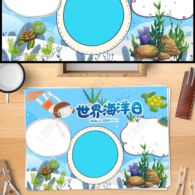 世界海洋日手抄報(bào)卡通海洋風(fēng)節(jié)日介紹小報(bào)模板下載 Array