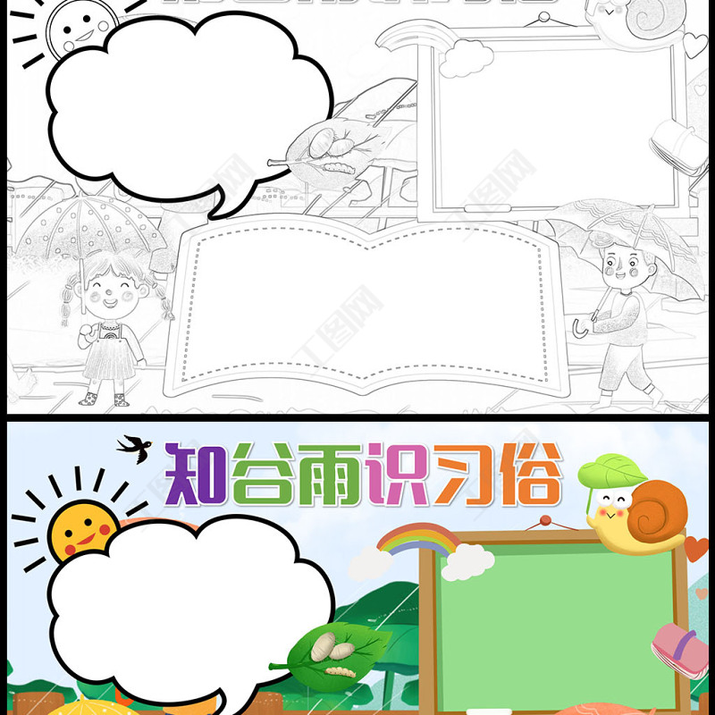 2023知谷雨識習(xí)俗手抄報(bào)卡通風(fēng)創(chuàng)意中國傳統(tǒng)二十四節(jié)氣谷雨時(shí)節(jié)電子小報(bào)模板