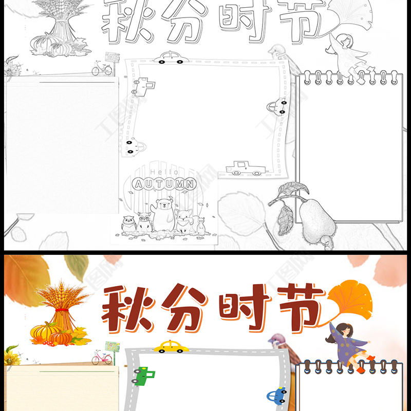 2021秋分時節(jié)傳統(tǒng)節(jié)氣手抄報卡通風格中國傳統(tǒng)節(jié)氣秋分小報模板