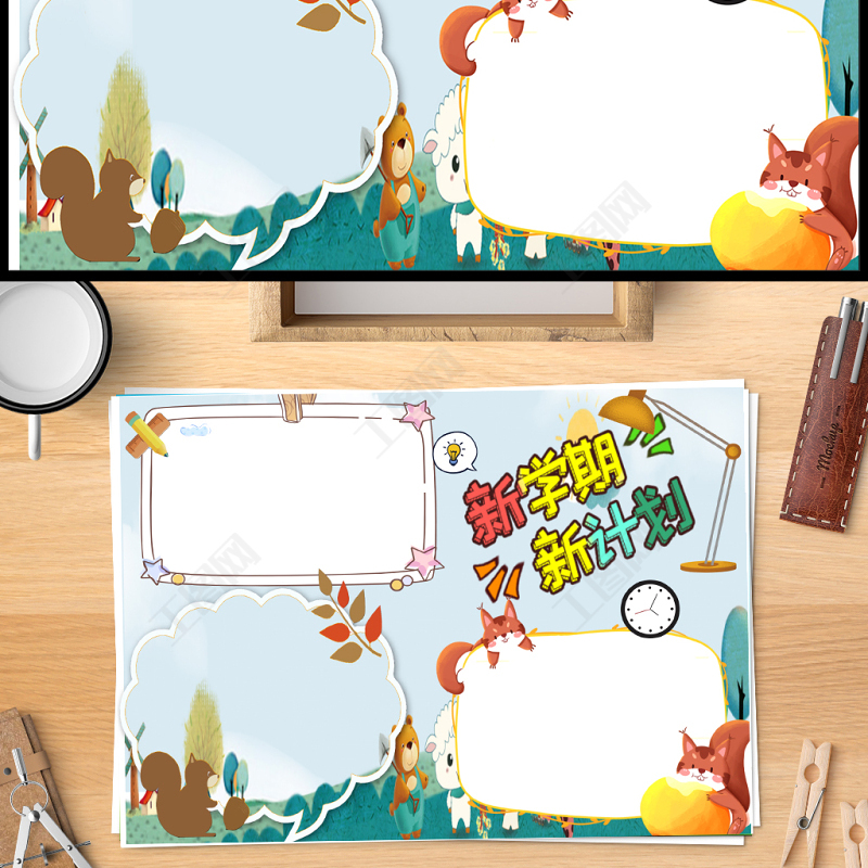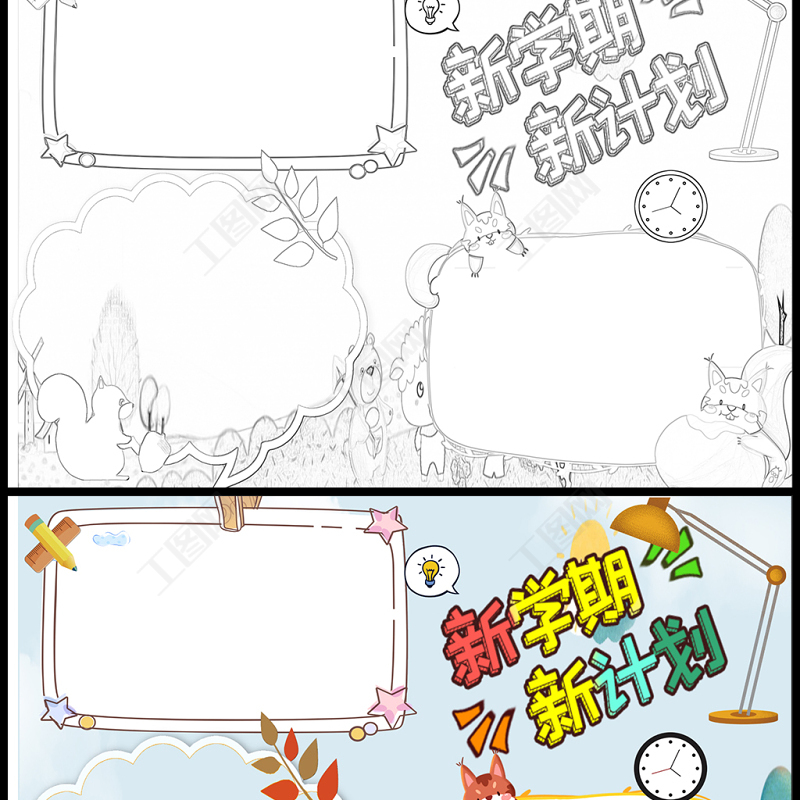 2021新學期新氣象手抄報卡通可愛學生新學期手抄目標計劃小報模板包含