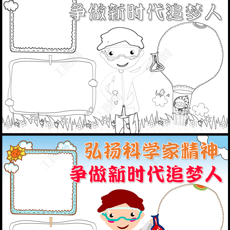 2023弘揚(yáng)科學(xué)家精神爭(zhēng)做新時(shí)代追夢(mèng)人手抄報(bào)簡(jiǎn)筆畫卡通弘揚(yáng)科學(xué)家精神word電子小報(bào)模板