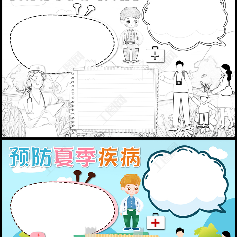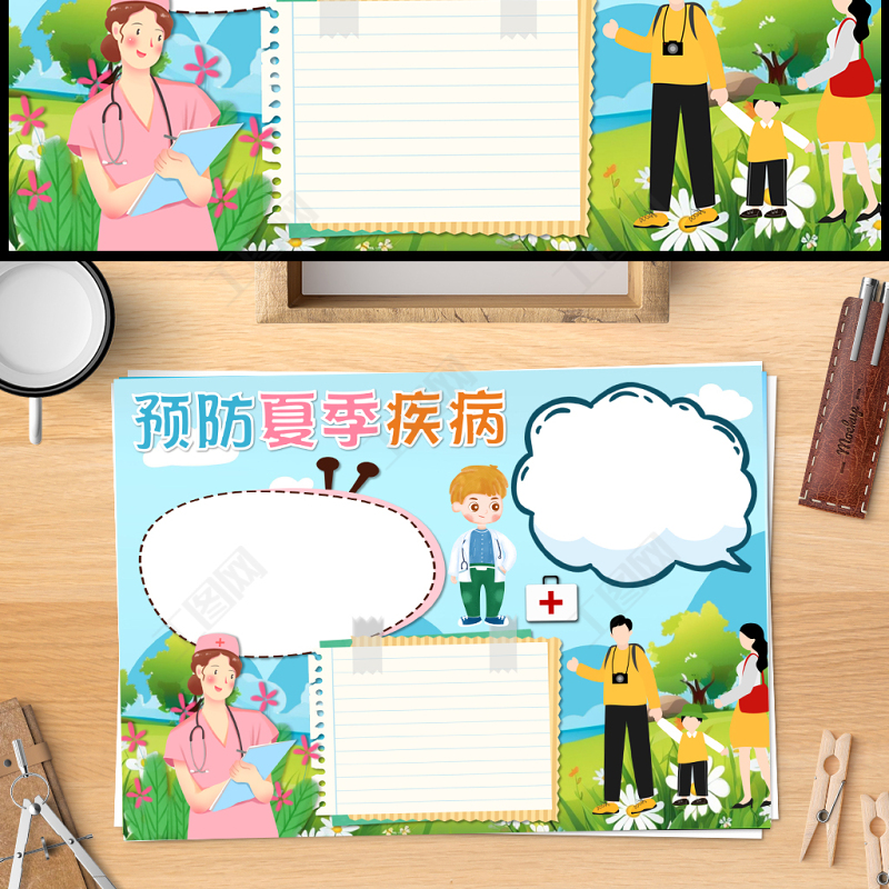 2023預(yù)防夏季疾病手抄報(bào)清新卡通風(fēng)疾病預(yù)防word電子小報(bào)模板